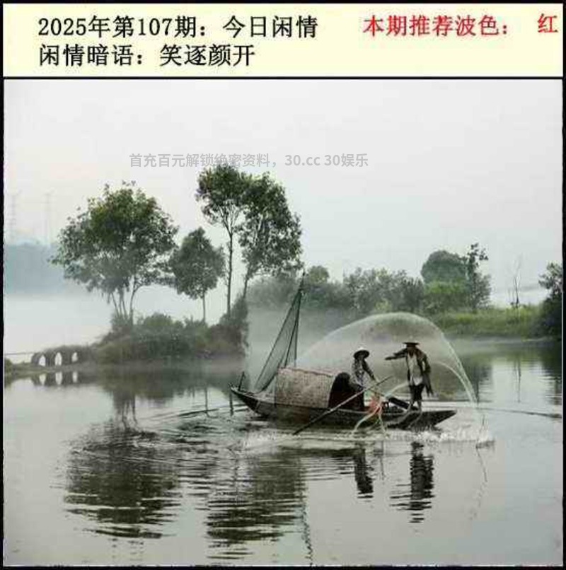 107期:今日闲情:笑逐颜开..(推荐红波) 解释:图是渔民在打鱼撒网的画面,打鱼是在水中船上故解水肖-鼠猪,船为木故又解木肖-虎兔,网捕鱼是为利器解金肖-猴鸡。 解特肖:猴鸡虎兔鼠猪 主推14码:10.22.34.46.09.33.16.40.15.39.06.42.07.19 |